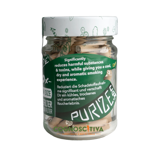 Os 100 PURIZE filtros de carvão ativado XTRA Slim Size num vidro de reciclagem!