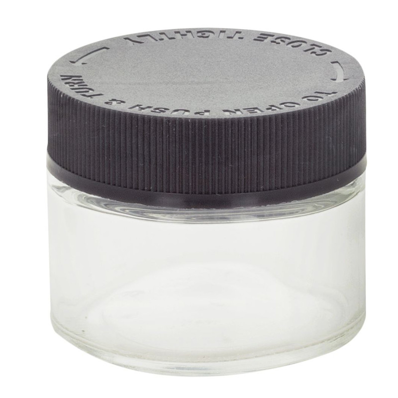 Frasco de vidro com tampa de plástico perfeito para transportar e armazenar algumas gramas de flores, resina ou tudo o que te apeteça!